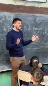 Fuimos invitados por docentes de nivel primario y nos recibieron unos 60 alumnos de dos cursos de sexto grado.